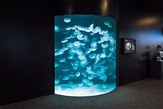 Home to a wide range of exhibits characteristic of Shimonoseki, LED light highlights the charm of the aquarium