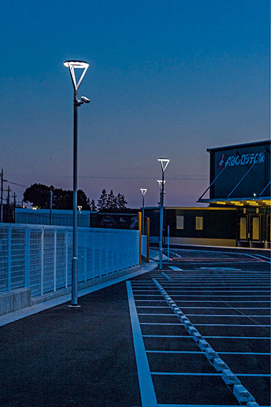 Centered on its frozen and refrigerated storage warehousing spaces the lighting scheme at the Utsunomiya Distribution Center makes use of LEDioc DEPOLINER high bay luminaires with horizontal and circular light distribution to illuminate the large warehousing spaces with a total floor area of 14076m². In the frozen storage warehouse, due care was taken to avoid the impact of glare on the forklift operatives when stocking and moving items, and the lighting was positioned so as to provide an uncluttered look on the ceiling whilst ensuring suitable illuminance levels along the aisles. With the IP65 rated luminaires designed to tolerate a broad range of temperatures from -30℃ to +50℃, they are well suited for use in the frozen storage warehouse where the ambient temperature is set at -30℃. The repair shop set up on the premises is a building with a floor space of 416m², with LEDioc CEILING HB high bay luminaires mounted on the ceiling to provide a bright and comfortable working environment. The exterior lighting on the premises is provided by LEDioc AREA type-D pole lights; conscious of design and functionality requirements, they deliver an omnidirectional light distribution together with high efficiency, helping to improve safety at night with their breezy light which contributes towards energy savings.