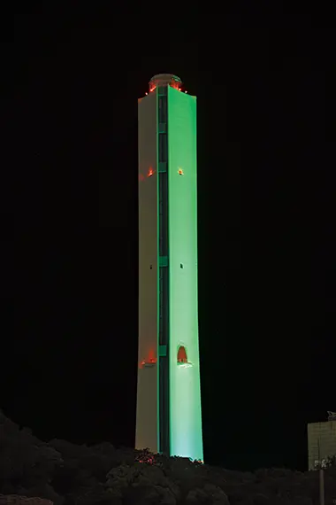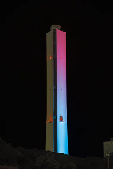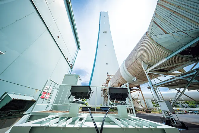 Add to My ListCommencing April 12th, 2025 on the day before the opening of the Expo 2025 Osaka, Kansai, Japan and running until October 13rd, 2025, the Kansai Electric Power Company, Inc. (KEPCO) illuminated the Nanko Sky Tower, a symbol of the Nanko Power Station as part of an initiative geared towards further boosting momentum for the EXPO 2025. Located in the Minami-Futo area of Nanko Port facing Osaka Bay, Nanko Power Station is an LNG thermal power station operated by KEPCO, which replacement plan is currently undergoing. The Nanko Sky Tower located around 4 km south of the venue site, is 200m tall and characterized by a triangular prism shape and features a white base with pale green stripes, seeing it nicknamed affectionately by locals as "Leek Boy". With the illuminations of the Nanko Sky Tower, a symbol of the Nanko Power Station visible from the Grand Ring and the southeast area of the EXPO 2025 site, the scheme for it has been devised to be enjoyed as an additional flourish of color to the scenery of the site. The aim was also to create a warm and gentle lighting display to send them who may have spent the day at the site home with a lasting warm glow from their Expo experience. Making use of the full color-changing LEDioc FLOOD FULL-COLOR floodlights selected for the project, a varied lighting program has been put in place, including gradations based around green and blue, as well as around the blue and red theme colors of the EXPO 2025, and motions inspired by those colors. Resonation with the Expo 2025 theme of "Designing Future Society for Our Lives" and appreciating the diversity of every individual, the scheme was designed to be enjoyed across all demographics. Drew many visitors both from Japan and abroad, the EXPO 2025 concluded with great success. We took various measures to promote the EXPO 2025, which was being held in our local area, and our colleagues have been actively sharing information across social media and other platforms. As a local energy company, we are very pleased and proud that the illumination of Nanko Sky Tower at Nanko Power Station had been added splash of color to it.