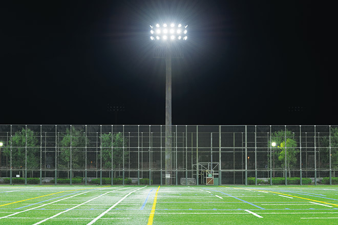 A change to LED for the night-game lighting for a ball-sports field enabling the enjoyment of a variety of sports creates a pleasant lighting environment