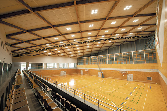 A hub of sporting activity within the community, the gymnasium is illuminated by the warm and pleasant light of LEDioc HIGH-BAY Λ luminaires