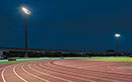 LEDioc FLOOD DUELL lights create a pleasant night-game lighting environment by illuminating an athletics field in a park that boasts a full range of facilities