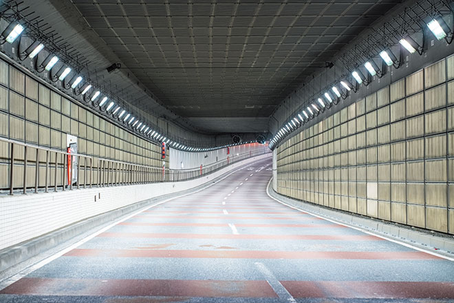 Lighting improvement works on the tunnel with two lanes each way, saw the existing sodium installations replaced with LED luminaires on the northbound side in 2019 and the southbound side in 2021. Using LEDioc TUNNEL KWE Series LED tunnel luminaires for the lighting of the main tunnel and at their entrances, illuminance levels have been increased despite a reduction in the number of installed units, enabling the transition to a long-life and energy saving scheme.